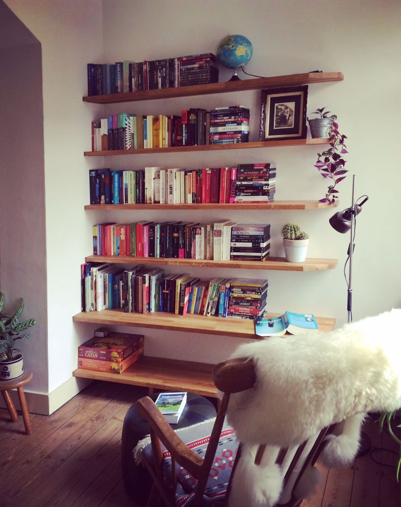 Dit eiken boekenrek met twee verschillende dieptes is ideaal voor opbergdozen, gezelschapspelen en boeken.