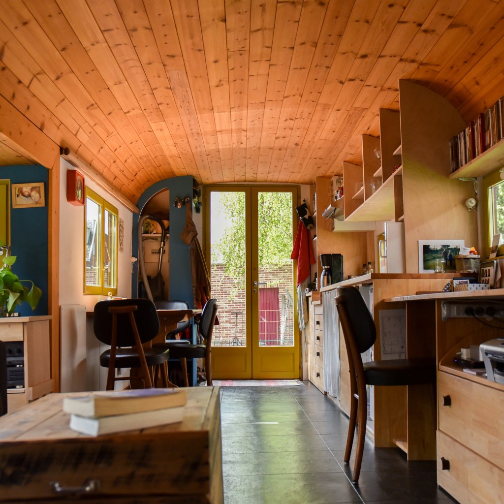 Deze woonwagen uit het begin van de 20e eeuw is het eerste project waar ik me op heb gesmeten als houtbewerker. Toen was ik nog in opleiding en heb deze kans genomen om alle facetten van houtbewerking en tiny houses te onderzoeken (houtskelet, ramen maken, interieur, ontwerp).
